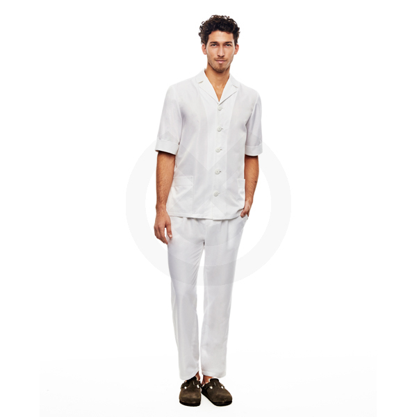 Casaca moderna de estilo camisa, con botonadura central y dos amplios bolsillos laterales.
