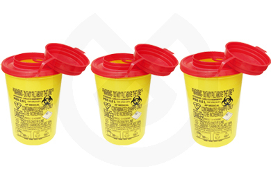 Contenedor para las agujas, escalpelos y objetos punzantes utilizados. Capacidad para 0,6 litros.