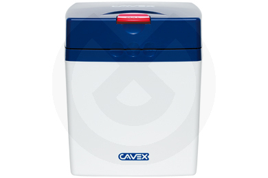 Contenedor para alginato con cuchara dosificadora que conserva el alginato en condiciones óptimas. Tapa de color azul, con apertura fácil. 15x15x18 cm. Capacidad aproximada para 2 bolsas de 500 gr de alginato.