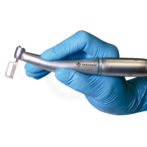 Aplicación eficaz de las tiras oscilantes con movimiento en posición fija o rotación libre .El sistema IPR Intensiv permite la reducción del esmalte proximal de uno o más elementos dentales, con el objetivo de obtener una reducción en línea a las exigencias del tratamiento ortodóntico. El uso de un contra-ángulo con movimientos permite la aplicación precisa y controlada de los instrumentos abrasivos con el fin de garantizar la máxima precisión y confort del stripping. -Movimiento oscilante de 0,9mm; 20.000 oscilaciones con 40.000 rpm. – 12 posiciones fijas (cada 30º sobre 360º).- Movimiento libre para el posicionamiento del Ortho-Strips en la posición deseada. - Posición fija para el uso de tiras Ortho-Strips para el procedimiento IPR. Indicaciones: La utilización con limas oscilantes para la reducción del esmalte interproximal durante los protocolos IPR en Ortodoncia. Ventaja: 20.000 oscilaciones por minuto para la máxima prestación de uso de las limas.