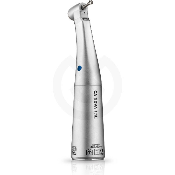 Contra ángulo 1:1 con luz Advanced. Cabezal pequeño y cónico Ø 6.3 mm 12.9 mm. Acero inoxidable. Cabeza a prueba de golpes. Válvula antirretorno. Garantía de 2 años.