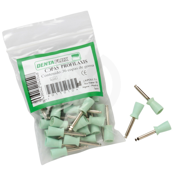 Copas de goma para profilaxis con láminas interiores para un uso eficiente de la pasta.