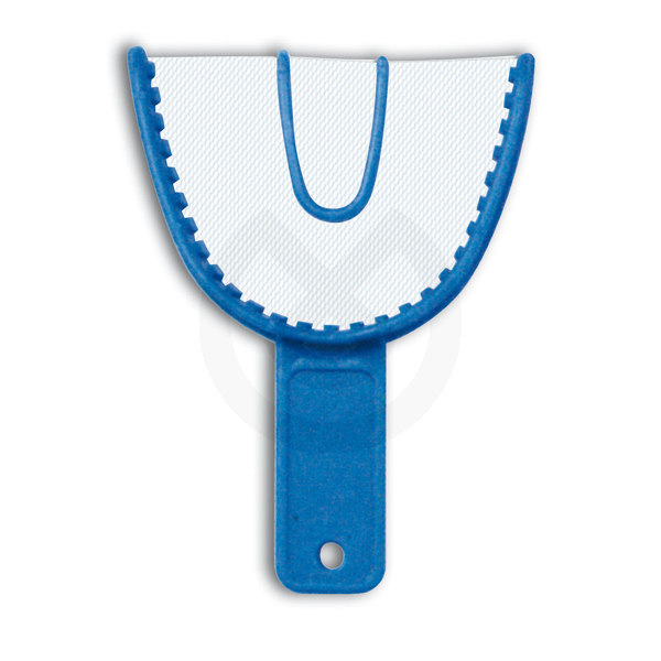Cubeta para impresión, de un solo uso y de plástico. Permiten obtener, en un solo paso, impresiones del antagonista y registro de mordida.