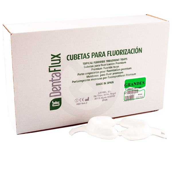 Al cargar las cubetas con gel de flúor e introducir en boca se consigue un baño completo de los dientes ahorrando producto y evitando que se trague el material en exceso, fallo muy normal en cubetas poco anatómicas y sin forma.