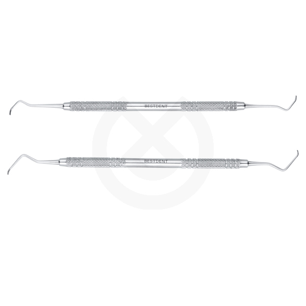 Curetas tipo Columbia para a eliminación del cálculo subgingival.