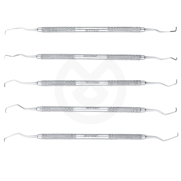 Curetas tipo Gracey para la eliminación del cálculo subgingival.