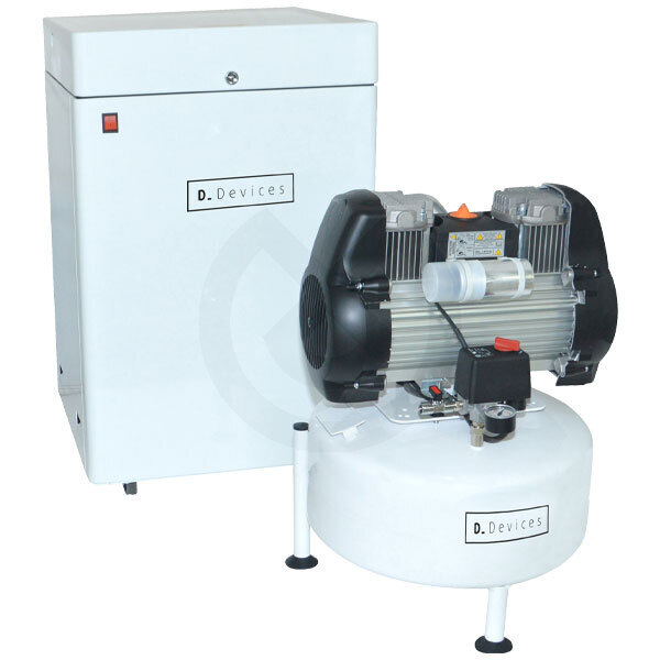 Compresor seco, supersilencioso, caudal 120 l/min@5 bar, depósito de 24 litros, con secador de membrana y filtración hasta 0,01 micras. Se completa con la cabina de insonorización, que también se puede instalar por separado y es adecuada para colocarla en el interior de los entornos de trabajo. El sistema Mini Box garantiza una insonorización líder en su clase (50 dBA).