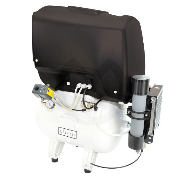 Compresor seco silenciado, caudal de 120 l/min@5 bar, depósito de 40 l, con secador de membrana de nueva generación capaz de suministrar aire seco hasta -20°C de punto de rocío. Incluye campana insonorizante que garantiza una rumorisidad de 55 dBA