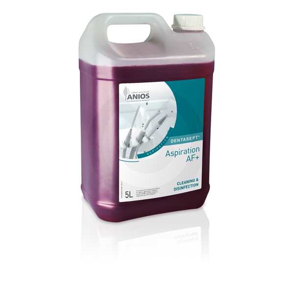 Solución concentrada no espumosa para la limpieza y desinfección de sistemas dentales de aspiración, separadores de amalgama y escupideras. Compatible con todos los sistemas de aspiración. Dilución económica: 2% (5L de producto = 250L de solución lista para usar). Tiempo de contacto: 15 minutos. Doble acción: limpia y desinfecta al mismo tiempo. Amplio espectro de eficacia antimicrobiana: Bactericida en 15 min (EN 13727, EN 14561), Tuberculocida en 60 min (EN 14348, EN 14563), levuricida en 15 min (EN 13624, EN 14562), Activa sobre virus envueltos en 15 min (EN 14476, EN 17111). Sin perfume.