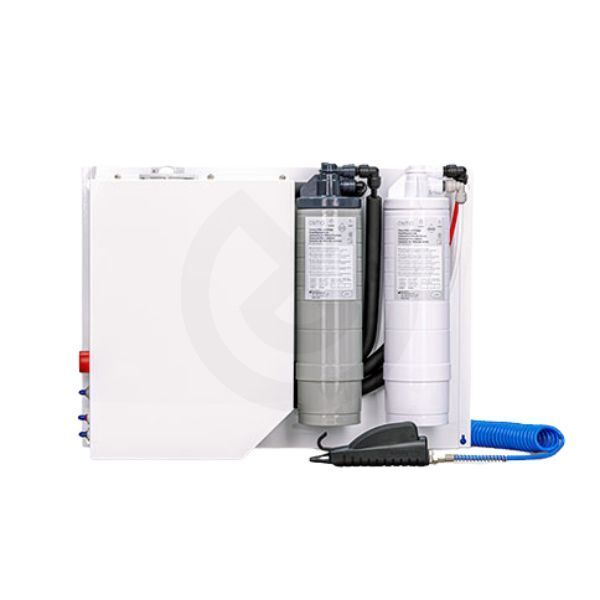 Osmo puede producir hasta 30 litros de agua desmineralizada por hora y suministrar hasta 6 dispositivos a la vez. El depósito de almacenamiento de agua tiene un volumen efectivo de 7 litros de agua desmineralizada para suministrar grandes cantidades de agua purificada usada para la esterilización y las actividades diarias, como el enjuague de instrumentos. Se puede utilizar con todos los tipos de esterilizador, hasta 6 dispositivos a la vez