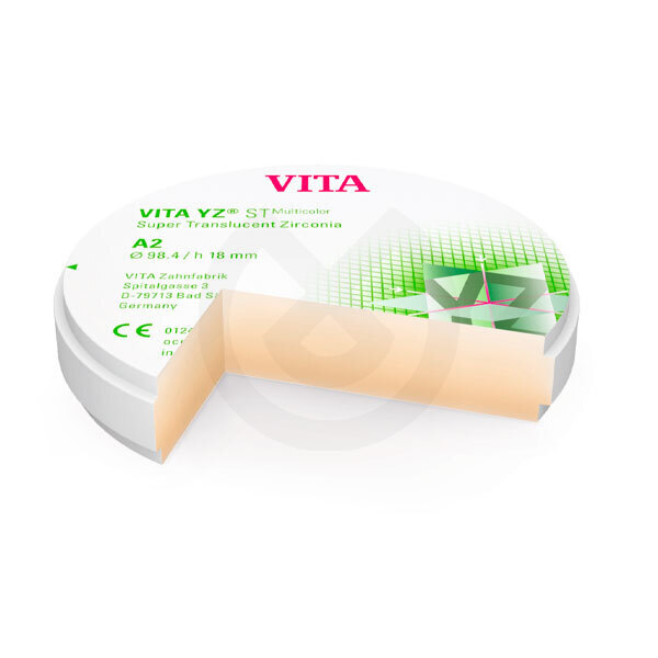 VITA YZ ST MULTICOLOR, son discos de circonio (ZrO2) super translúcidos para la confección de prótesis de dientes posteriores.