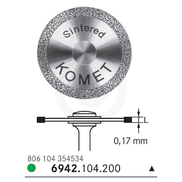 Flexible, vida útil más larga gracias a los bordes entremezclados de diamante. Ref. Fabricante: 6942-104-200 Ø 20 mm. L=0,17 mm. B=2 mm. 20.000 rpm.