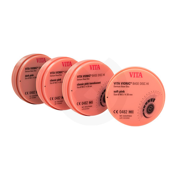 VITA VIONIC BASE son discos de PMMA precoloreados de primera calidad para la fabricación de bases de prótesis definitivas.
