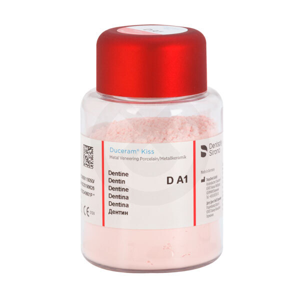 Duceram Kiss sistema de cerámica sobre metal se integran las líneas Duceram® Kiss y Cercon® Ceram Kiss, está pensado para facilitarle el trabajo tanto como sea posible. Cambiar entre los materiales de estructura ya no supone ningún problema y no requiere un período de formación ni familiarización. Duceram® Kiss incorpora el nuevo sistema de colores de Dentsply Sirona, lo que garantiza una reproducibilidad máxima al trabajar con colores V. Otras ventajas clave de Duceram® Kiss son su gran resistencia a la manipulación y su amplio margen en cuanto a CET, entre 13,8 y 15,4 μm/m · K (25 – 600 °C).