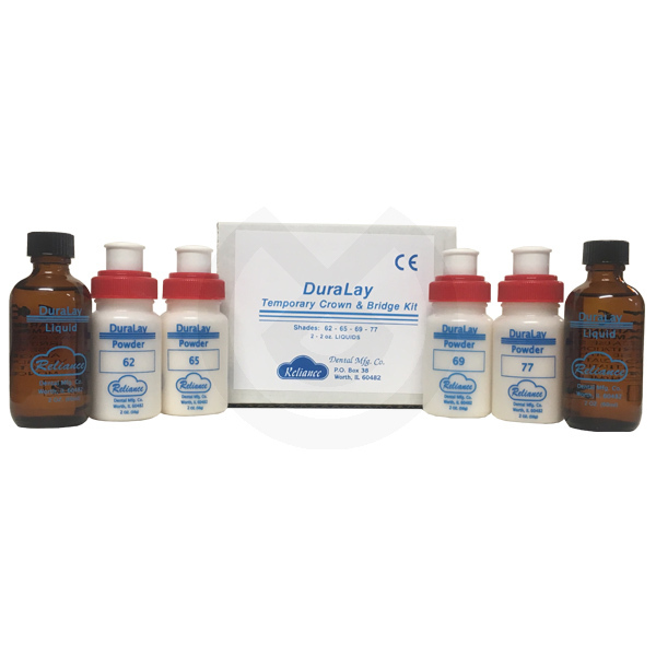Acrílico autopolimerizable para realizar restauraciones temporales de coronas y puentes. Con las mismas propiedades que el clásico DuraLay, tiene una mínima contracción, dureza y es fácil de retocar y pulir. Tiempo de fraguado de unos 4-5 minutos. Disponible en varios colores para un resultado más estético.