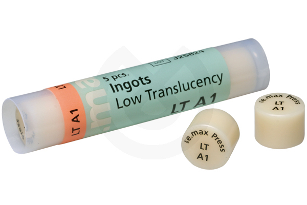 Las pastillas LT presentan una baja translucidez (LT) y se utilizan para la elaboración de coronas antómicamente modeladas parciales o totales. Especialmente en la zona de anteriores, el aspecto estético de la restauración se maximiza utilizando la técnica de cut-back en combinación con IPS e.max Ceram.