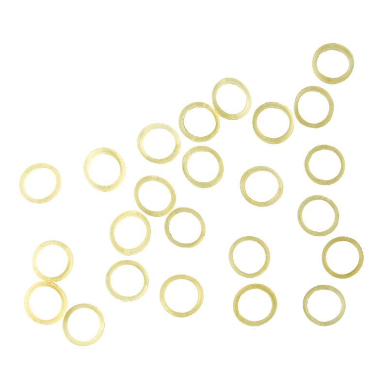 Elásticos de látex color ámbar. Total de 5.000 elásticos presentados en 50 bolsitas de 100. La fuerza indicada es la fuerza ejercida cuando el elástico es alargado 3 veces su diámetro.