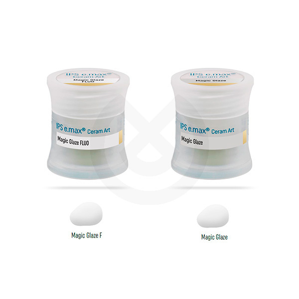 Las pastas IPS e.max Ceram Art Magic Glaze son glaseadores listos para usar. Se emplean para glasear, humedecer, unificar y preparar la superficie antes de aplicar maquillajes o para finalizar la restauración. Permiten realizar la técnica one-shot (glaseado + maquillaje + caracterización en un solo ciclo) o la técnica convencional. Ofrecen una capa lisa, controlada y sin efecto perlado.