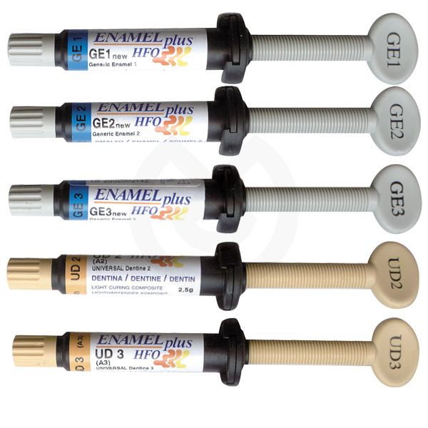 Enamel Plus HFO es un composite con las mismas características de fluorescencia y opalescencia que el diente natural, es un sistema compuesto por tonos dentina, esmalte genérico, esmalte opalescente, esmalte intensivo y tintes, que reproducen las cinco dimensiones de los dientes con un color natural: