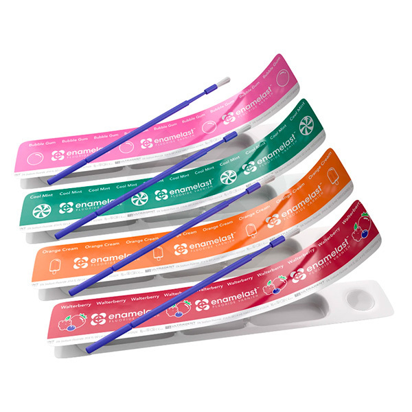 Su fórmula patentada que promueve la adhesión mejora la retención, proporcionando una liberación y absorción de flúor superiores. No es arenoso, tiene una apariencia casi invisible y está disponible en cinco diferentes sabores o en versión sin sabor. Enamelast también viene en dos opciones de aplicación, y no contiene gluten.