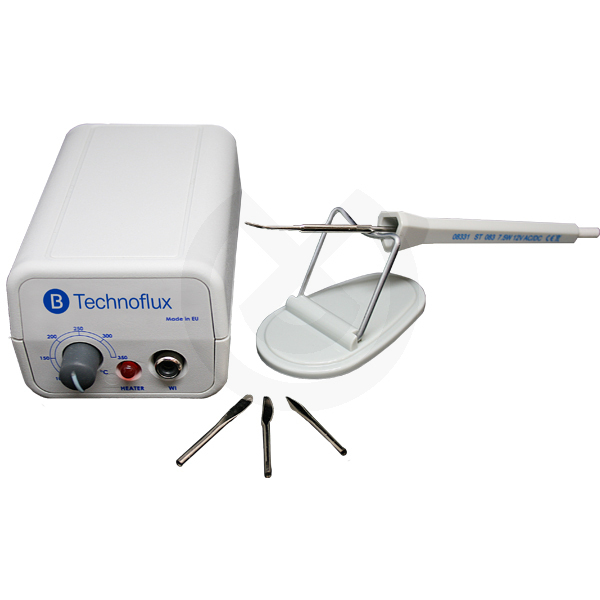 Espátula eléctrica para el modelado de ceras, con regulación de temperatura 100-400ºC. Fabricada en Alemania.