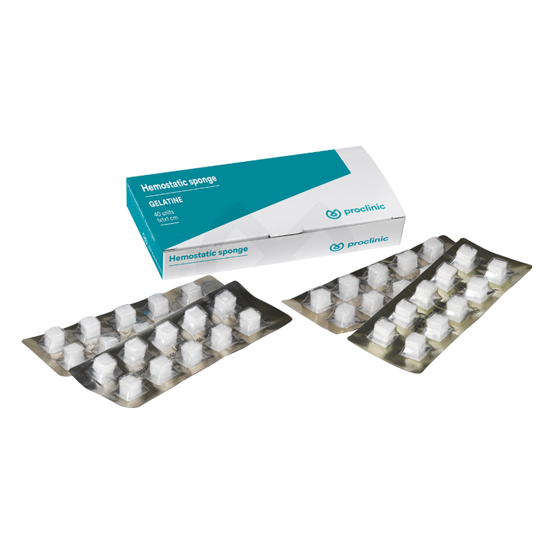 Esponja de gelatina de origen porcino de alto poder hemostático y cicatrizante.