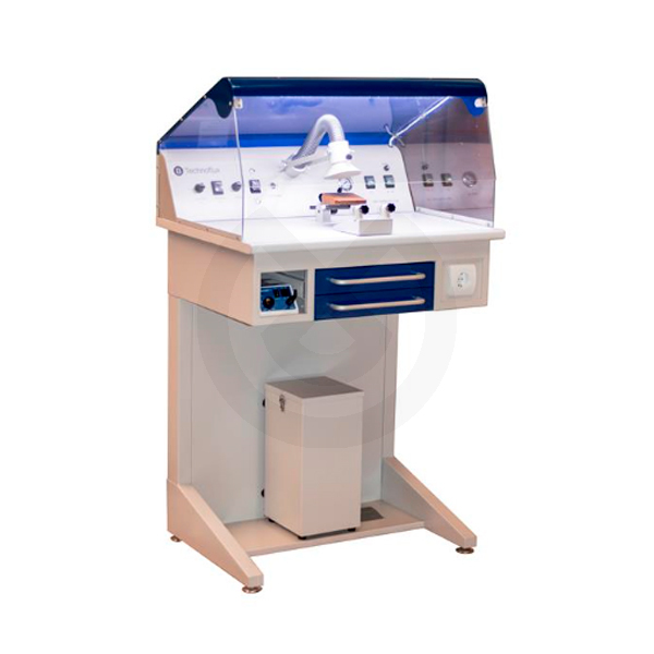 Estación de trabajo Technoflux para pulir con luz, aspiración y micromotor incluido. Desarrollada para cubrir todas las necesidades de repasado y pulido dentro del laboratorio dental.
