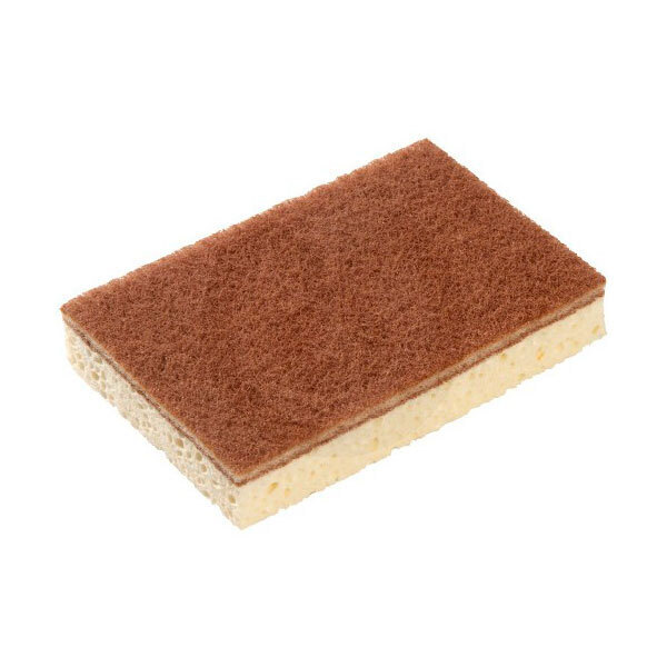 Estropajo con esponja con una elevada absorción, la parte de lavado absorbe 20 veces su peso. Fabricado con poliéster, cáscara de nuez y celulosa biodegradable.