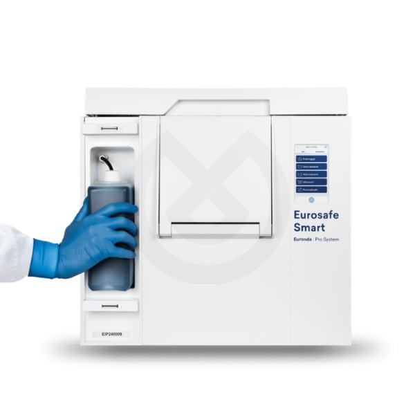 Eurosafe Smart es una cuba multifuncional de mesa, limpia y seca el instrumental en un proceso rápido, automatizado, repetible y rastreable. Además, utilizada en combinación con el desinfectante y detergente multienzimático Sanifizer Automatic, combina la eficacia del lavado con ultrasonidos con la limpieza y desinfección de la carga, respetando plenamente los materiales tratados. Ofrece la posibilidad de elegir entre tres programas preestablecidos de lavado y seis programas de lavado con ultrasonidos, así como la posibilidad de personalizar determinados parámetros del ciclo.