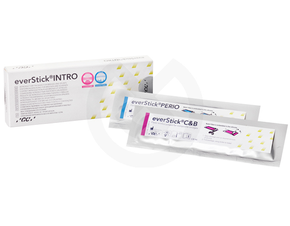 EverStick son fibras de vidrio de refuerzo, desarrolladas para un tratamiento mínimamente invasivo que preserva los tejidos sanos del paciente tanto como sea posible. Está compuesto de fibras de vidrio, un polímero termoplástico y una matriz de resina polimerizable de refuerzo de los composites dentales. EverStick está preimpregnado de composite y están especialmente indicadas para prótesis estéticas de coronas y puentes, todo tipo de ferulizaciones tanto en Perio como en Ortodoncia y en casos de trauma, restauraciones radiculares, etc.
