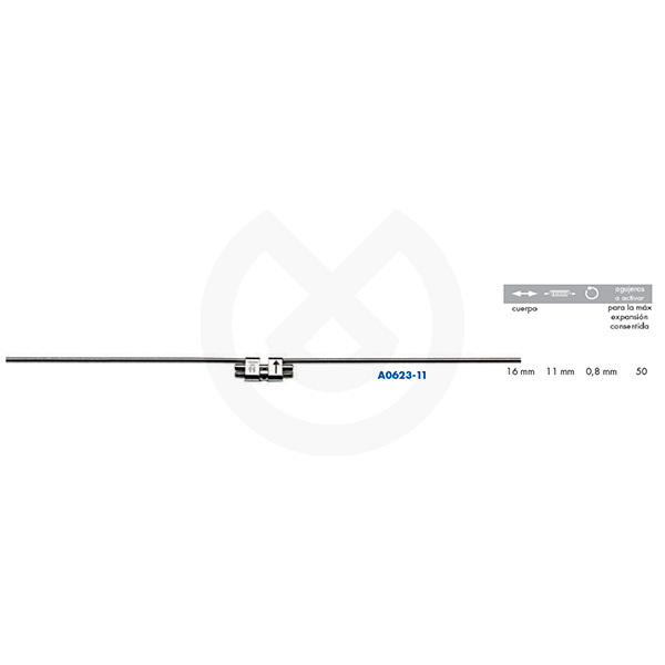 Expansor para arcada inferior con una expansión de 11 mm, longitud total de 16mm y una vuelta de tornillo de 0,8mm.