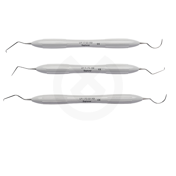 Instrumento sencillo con un único explorador largo doblado. Esta sonda sirve para el diagnóstico de caries, examinar las superficies y uso general en odontología.