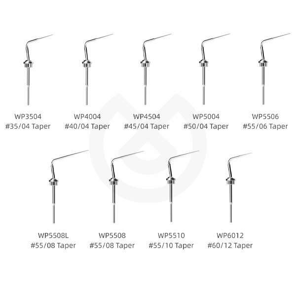 Puntas de repuesto para pieza de mano Fi-P, disponibles en diferentes medidas.