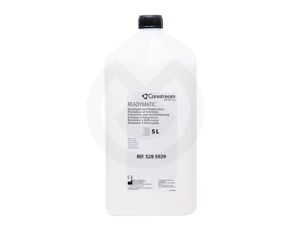 El revelador y fijador dental READYMATIC están diseñados para su uso en todos los procesadores automáticos de película radiográficas dentales de transporte por rodillos y proporcionan resultados uniformes y claros para todas las radiografías intraorales y extraorales. Para su comodidad, nuestros productos químicos están disponibles en una presentación lista para usar y también se venden por separado en cómodos paquetes.