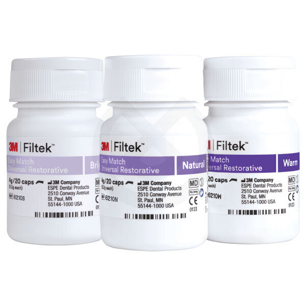 Gracias a una opacidad que se adapta de manera natural y más de 50 años de ciencia e innovación en composites dentales, el composite universal 3M™ Filtek™ Easy Match ofrece un proceso de selección de color intuitivo para simplificar los procedimientos de restauración directa sin comprometer la opacidad. Este sistema de tres tonos está diseñado para ofrecer una excelente coincidencia de tonos para la mayoría de los casos, de forma sencilla e intuitiva.