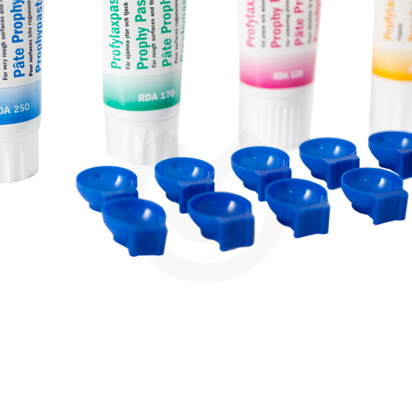 Una alternativa práctica e higiénica para dispensar ProphyCare Prophy Paste. Dispense la cantidad necesaria de pasta de profilaxis en el vaso desechable FixyDap. Cuélguelo en el margen de la bandeja o use el adhesivo de su base para pegarlo en cualquier superficie como por ejemplo encima del guante.