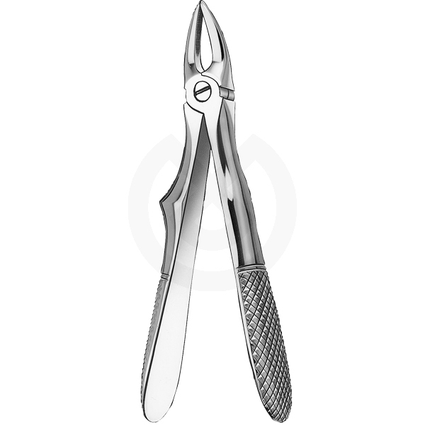 Fórceps especialmente diseñados para la extracción de incisivos superiores temporales, con un tamaño reducido tanto del mango como de su parte activa, tienen la misma angulación que los fórceps de adultos. Son rectos, las puntas no se tocan. Esterilizable en autoclave.
