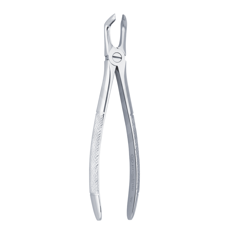 Fórceps para la extracción de piezas dentales. Resistentes, con forma anatómica y sujeción firme. Para cordales inferiores izquierdos y derechos.