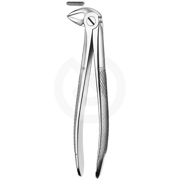 Fórceps para la extracción de raíces inferiores con puntas finas. Fabricado en acero inoxidable de alta calidad, libre de níquel según norma DIN 1.4021. Su mango se adapta ergonómicamente a la mano y sus estrías garantizan una firme sujeción. Esterilizable en autoclave.