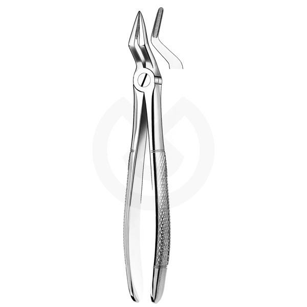 Fórceps para la extracción de raíces superiores. Fabricado en acero inoxidable de alta calidad, libre de níquel según norma DIN 1.4021. Su mango se adapta ergonómicamente a la mano y sus estrías garantizan una firme sujeción. Esterilizable en autoclave.