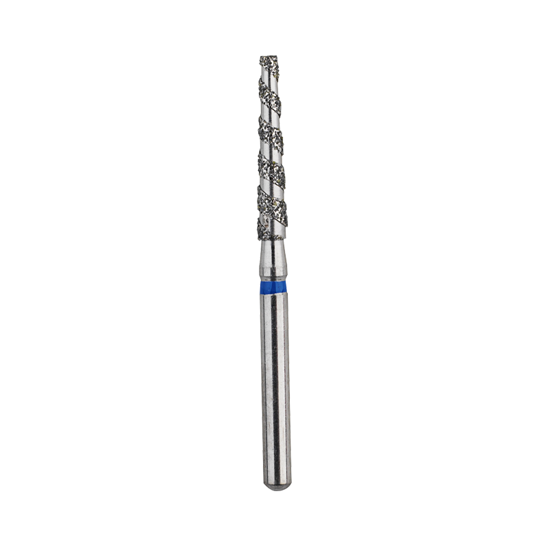 Las fresas turbo presentan un excelente rendimiento de tallado, prácticamente el doble que las fresas convencionales, presentan menos riesgo de dañar la pulpa dental gracias a la espiral no diamantada que permite una mejor refrigeración de la fresa durante el tallado, así como una mejor expulsión de los detritus que se generan durante el mismo. Evita el efecto aquaplaning.