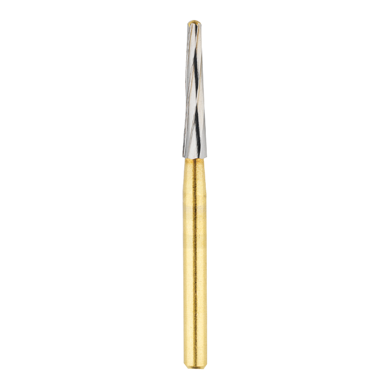 Fresa pensada para realizar una entrada en la cavidad de acceso en forma de embudo, que permite un acceso directo a los orificios radiculares. Velocidad recomendada: 160.000 a 300.000 rpm.