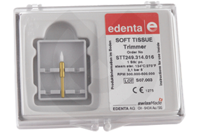 Fresa de cerámica especial para cortar tejido blando, como alternativa al bisturí y la electrocirugía. Debe utilizarse sin spray refrigerador de agua. Esterilizable a 134ºC. Para turbina.
