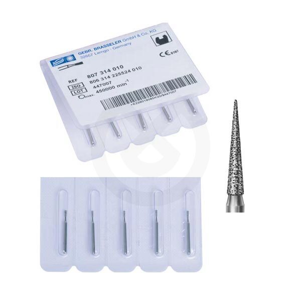 FRESAS DIAMANTE TURBINA MODELO 858 CÓNICO PUNTIAGUDO PARTE ACTIVA 8 MM