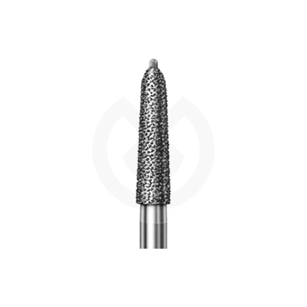 Fresas F.G. de diamante modelo torpedo cónico con bisel. Con pin guía.