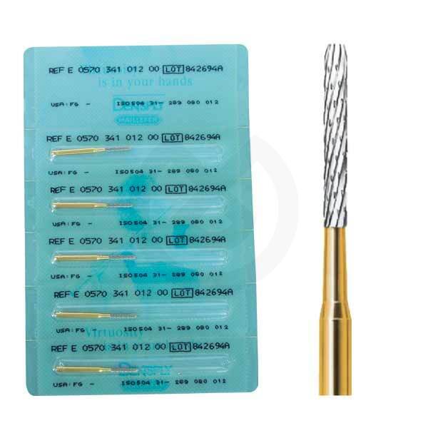 Fresas para cortar metal (carburo de tungsteno). Especialmente diseñada para cortar y perforar coronas y puentes (oro y cromo níquel u otras aleaciones no preciosas) así como para eliminar composites y amalgama.