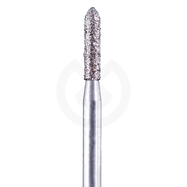 Fresa diamantada tipo torpedo para la preparación de coronas.