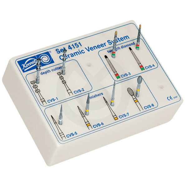 Set de fresas LVS diseñado por el Dr. Ronald Goldstein para la preparación de carillas de porcelana. Para F.G.