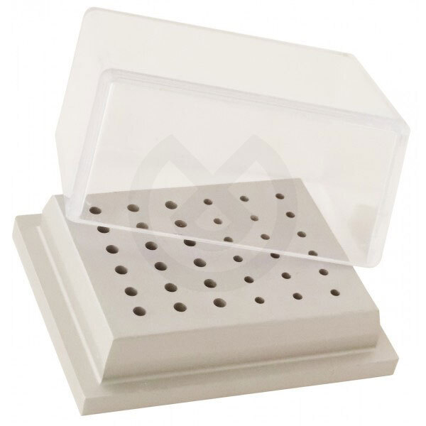 Fresero metálico para 36 fresas (18 FG y 18 CA). Tapa transparente no autoclavable.