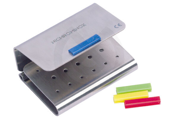 Para 4 fresas de Turbina y 4 de Contra-Ángulo.En acero inoxidable, con sistema autobloqueo para evitar la caida de las fresas. Se suministran con 4 tiras de silicona de diferentes colores para crear su propia organización de las fresas.